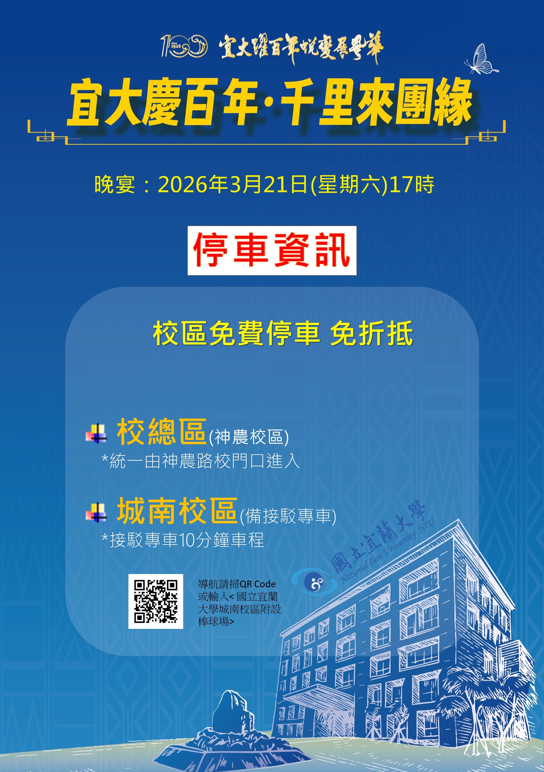 蘭陽平原的春風已備,百桌盛宴即將開席。期待在3月21日這天,與您一同見證宜大邁向下一個璀璨百年!